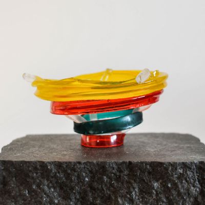 2016 började jag arbeta med återanvända tunna glasringar och familjen Fragile Circle var född. Skörhet är ett begrepp som kan associeras likaväl till metafysiska frågor som till materialet glas. Cirkeln är en symbol för evighet, helhet och rörelserna i naturen och dess cykler. Inom familjen Fragile Circles är materialets och formernas utsatthet dragna till det yttersta. De spår av montage och lagningar som kan finnas, är där för att understryka att det sköra och icke perfekta alltid bidrar till något mer – en parallell till våra liv.