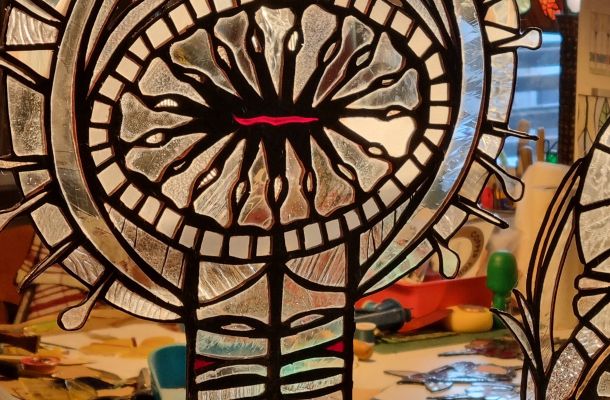 Efter att först jobbat med fönster och inredningsdetaljer, började jag experimentera. Skapa mera fritt, låta glaset berätta.